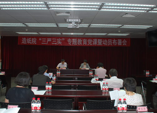 ? ??根據(jù)國(guó)資委黨委和集團(tuán)公司黨委關(guān)于開(kāi)展“三嚴(yán)三實(shí)”專題教育的部署和要求,6月9日下午,造紙?jiān)狐h委舉辦“三嚴(yán)三實(shí)”專題教育黨課暨動(dòng)員部署會(huì),造紙?jiān)狐h委書記孫波講專題黨課,造紙?jiān)狐h委副書記、紀(jì)委書記劉波主持會(huì)議并部署“三嚴(yán)三實(shí)”專題教育實(shí)施方案。造紙?jiān)侯I(lǐng)導(dǎo)班子成員、各部門負(fù)責(zé)人、支部書記及所屬單位領(lǐng)導(dǎo)班子成員參加了學(xué)習(xí)。