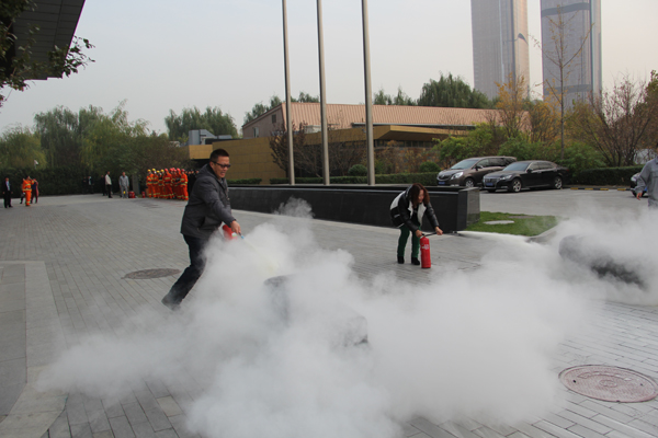 下午3點(diǎn)整活動(dòng)開(kāi)始,數(shù)名員工從樓梯和安全通道撤離到指定地點(diǎn)。公司消防員分別演示拋灑水袋和滅火器的使用方法。針對(duì)實(shí)際情況,部分員工有序演練了手提式干粉滅火器的操作。
