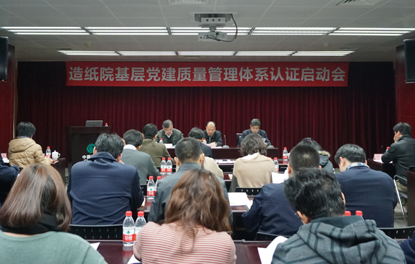 12月5日上午,造紙院黨委組織召開了基層黨建質(zhì)量管理體系認證啟動會。中輕集團公司黨委副書記馬思一、黨委辦公室主任李義民、中大華遠認證中心副主任張劍、市場部主任王彤應(yīng)邀出席了會議。造紙院黨委委員、紀委委員、支部書記及研發(fā)黨支部全體黨員共50余人參加會議。