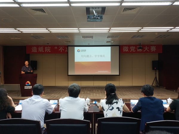 造紙?jiān)喝w黨員百余人參加了本次微黨課活動,中輕集團(tuán)黨辦主任寧靜蒞臨指導(dǎo)。