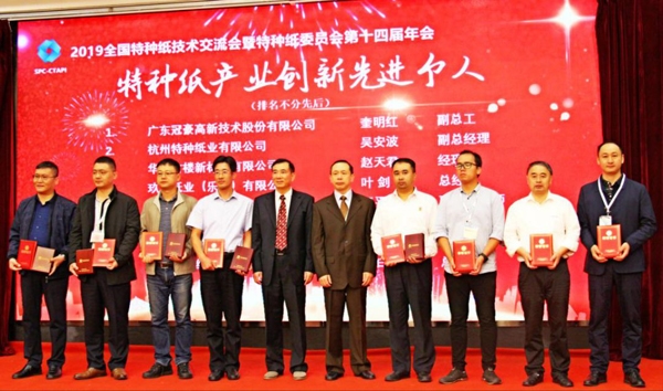 10月15日,“全國特種紙技術交流會暨特種紙委員會第十四屆年會”拉開帷幕。開幕式上,舉行“特種紙產(chǎn)業(yè)創(chuàng)新先進表彰儀式”,郭建全、任建平、衢州市副市長王良春、造紙院總經(jīng)理孫波為我國特種紙產(chǎn)業(yè)創(chuàng)新作出突出貢獻的企業(yè)和個人頒獎。