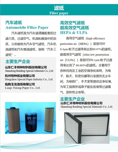 空氣濾紙,目前已經(jīng)普遍應用于汽車濾清器,成為主要過濾介質(zhì)等等。