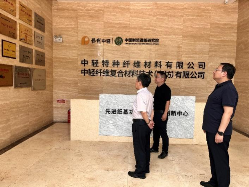 7月10日,河北省科技廳副廳長張永強(qiáng),廊坊市科技局黨組書記、局長洪江一行蒞臨中國制漿造紙研究院(以下簡稱“中國造紙院”)所屬中輕特種纖維材料有限公司(以下簡稱“中輕特材”)園區(qū),就中試熟化基地建設(shè)情況進(jìn)行調(diào)研。中國造紙院總經(jīng)理助理、中輕特材總經(jīng)理趙濤攜相關(guān)負(fù)責(zé)人接待了張永強(qiáng)一行。