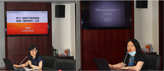辦公室主任陳薈欞圍繞徐念沙書記黨課和《使用7S框架建設(shè)協(xié)調(diào)一致的組織》課程內(nèi)容,結(jié)合中輕集團宣傳冊制訂工作分享學(xué)習(xí)心得;總經(jīng)理助理、企業(yè)發(fā)展部主任肖丹圍繞徐念沙書記黨課和《使用PLAN法提升執(zhí)行力》課程內(nèi)容,結(jié)合中輕集團戰(zhàn)略規(guī)劃編制工作與大家進行充分交流。