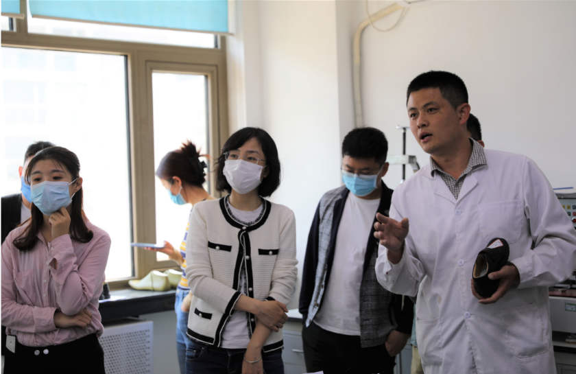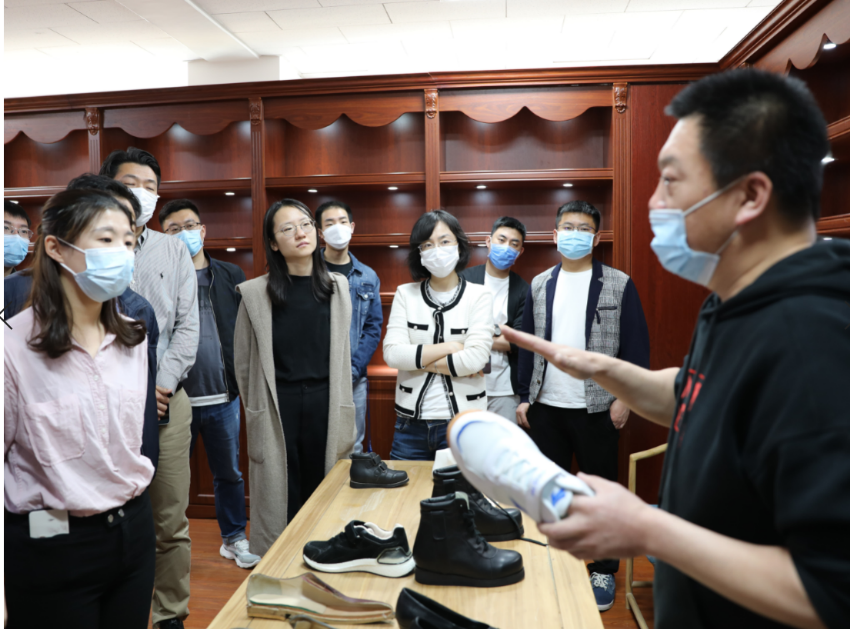 隨后,大家在陳鐳書記的陪同下,由中國皮革制鞋院團支部書記王家軼帶領參觀了實驗室。“皮革材質(zhì)鑒定室”、“鞋類物理檢測室”和“腳型鞋楦展廳”引起了大家濃厚興趣。最后,大家在 “優(yōu)品小店”駐足,聽取中國皮革制鞋院在試點品牌終端服務的有益探索。