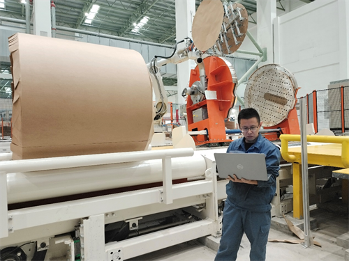 在馬來(lái)西亞玖龍項(xiàng)目的紙卷輸送包裝車間,一位工作人員正在通過(guò)電腦連接生產(chǎn)線進(jìn)行調(diào)試。他注意力高度集中,根據(jù)紙卷包裝運(yùn)行狀態(tài)有條不紊地調(diào)整著各項(xiàng)參數(shù),很快地,一個(gè)個(gè)紙卷像聽(tīng)懂了他的命令一般,整齊有序地依次排隊(duì)入庫(kù)……