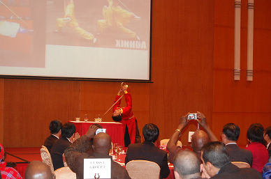 聯(lián)歡會(huì)上,由中食院工會(huì)牽頭組織的來(lái)自院科技發(fā)展部、物業(yè)部、財(cái)務(wù)部和食品、發(fā)酵、國(guó)際合作等各部門(mén)工作人員表演的扇子舞及變臉、茶藝、抖空竹等節(jié)目精彩紛呈,博得了全場(chǎng)觀眾的陣陣掌聲。學(xué)員們也通過(guò)自編自演的節(jié)目表達(dá)了對(duì)主辦單位、承辦單位的感激之情和中國(guó)人民的深厚情誼。商務(wù)部、集團(tuán)公司和院領(lǐng)導(dǎo)主持的現(xiàn)場(chǎng)抽獎(jiǎng)活動(dòng)將晚會(huì)推向高潮,2個(gè)小時(shí)的晚會(huì)在熱烈友好的氣氛中圓滿(mǎn)結(jié)束。