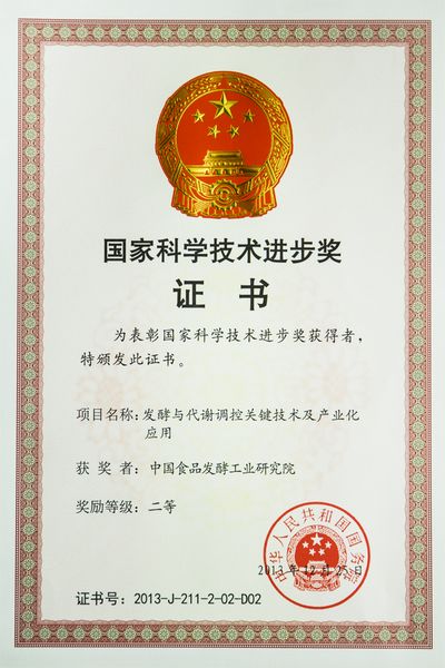 在剛剛閉幕的2013年度國家科技獎勵大會上,中國食品發(fā)酵工業(yè)研究院參加完成的“發(fā)酵與代謝調(diào)控關(guān)鍵技術(shù)及產(chǎn)業(yè)化應(yīng)用”成果,榮獲2013年度國家科技進步二等獎(張五九副院長在獲獎人員中排名第二)。