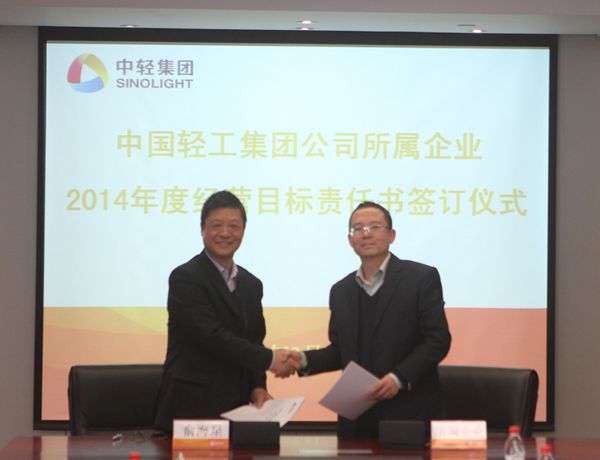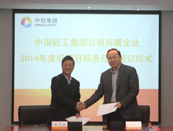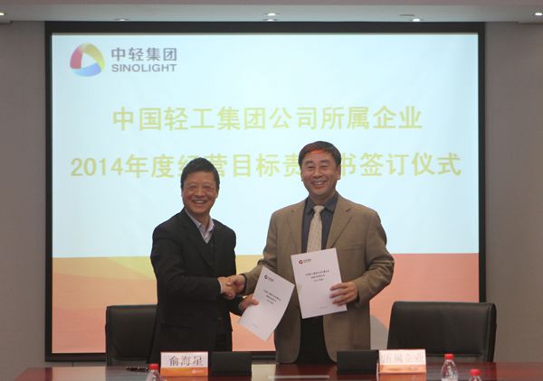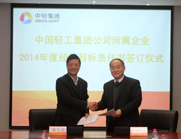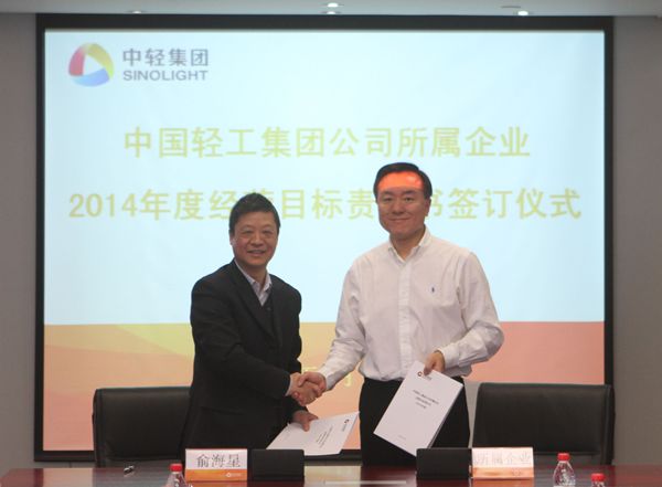 集團(tuán)公司總經(jīng)理俞海星與中輕物產(chǎn)公司總經(jīng)理錢小林簽訂經(jīng)營(yíng)目標(biāo)責(zé)任書